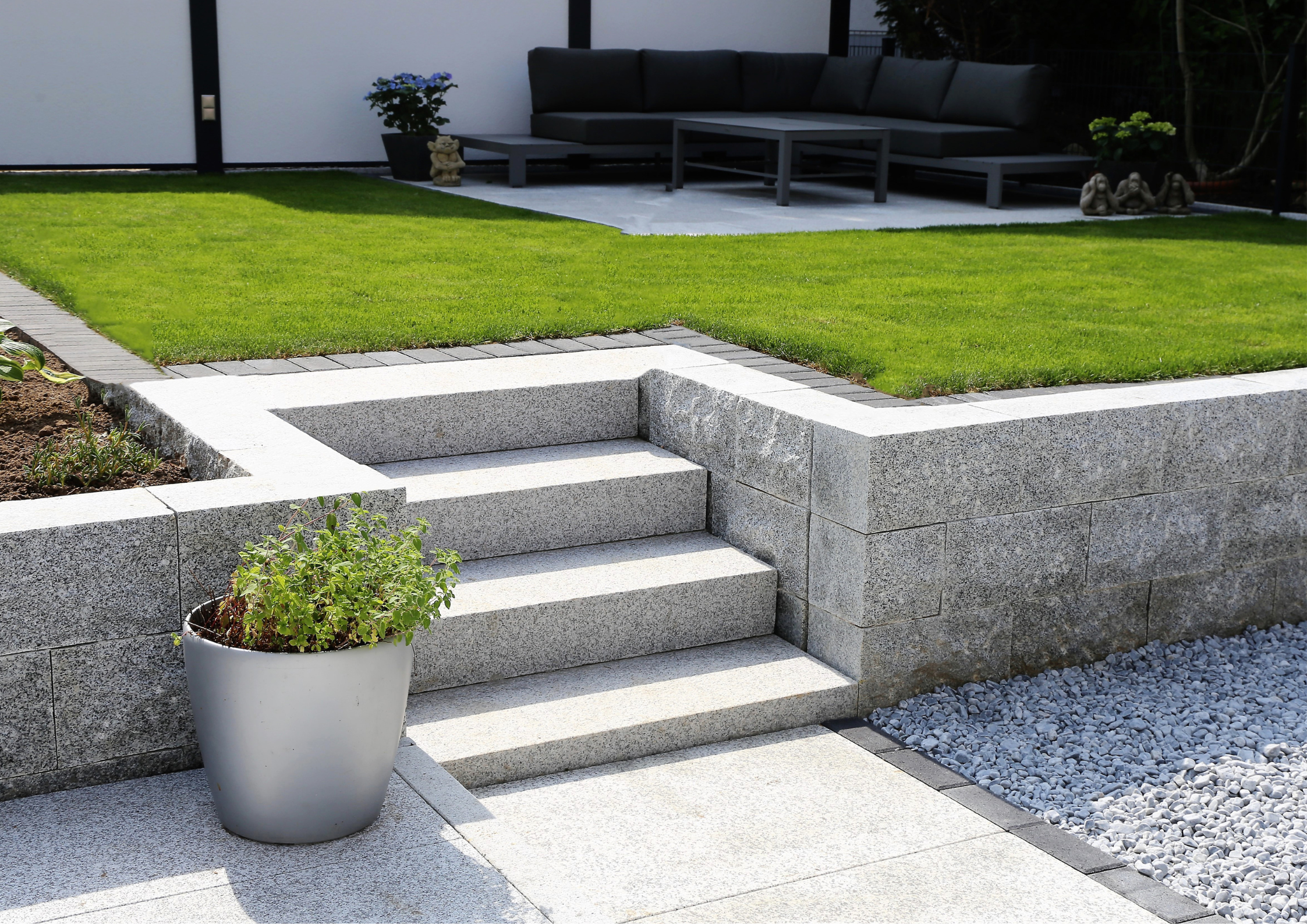L’élégance intemporelle de la pierre naturelle (Granit, Grès) ou reconstituée pour vos terrasses et allées piétonnes.