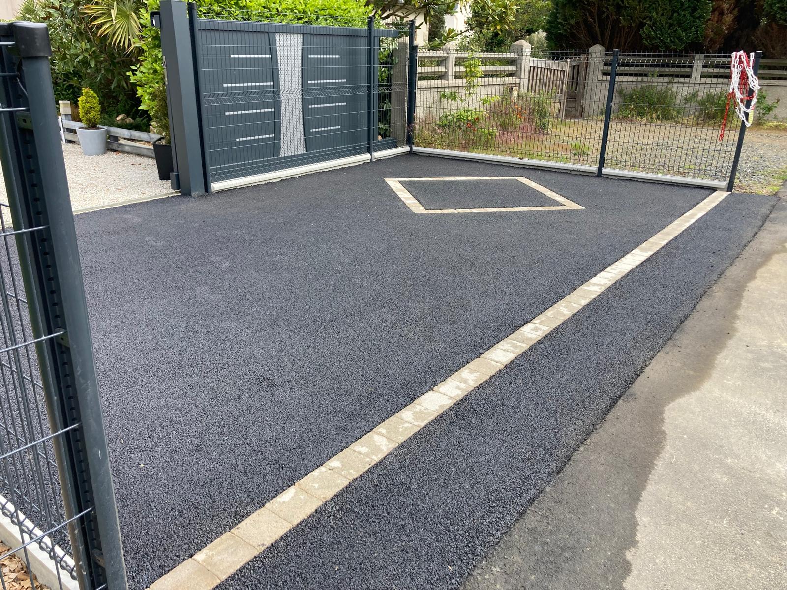 Création d’une fermeture totale pour une intimité maximale. Installation d’un grand portail coulissant plein et de son portillon assorti, intégrés sur un muret enduit. Une solution sobre et moderne qui protège intégralement la maison des regards indiscrets de la rue.
