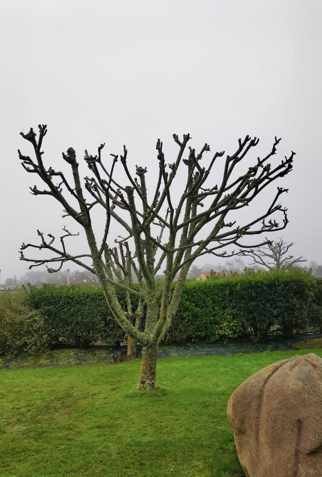 Taille de restructuration : Cette technique traditionnelle permet de contenir le volume de l’arbre durablement. L’objectif ici était de redonner de la lumière au jardin tout en conservant la structure architecturale de l’arbre pour qu’il reparte vigoureusement au printemps.