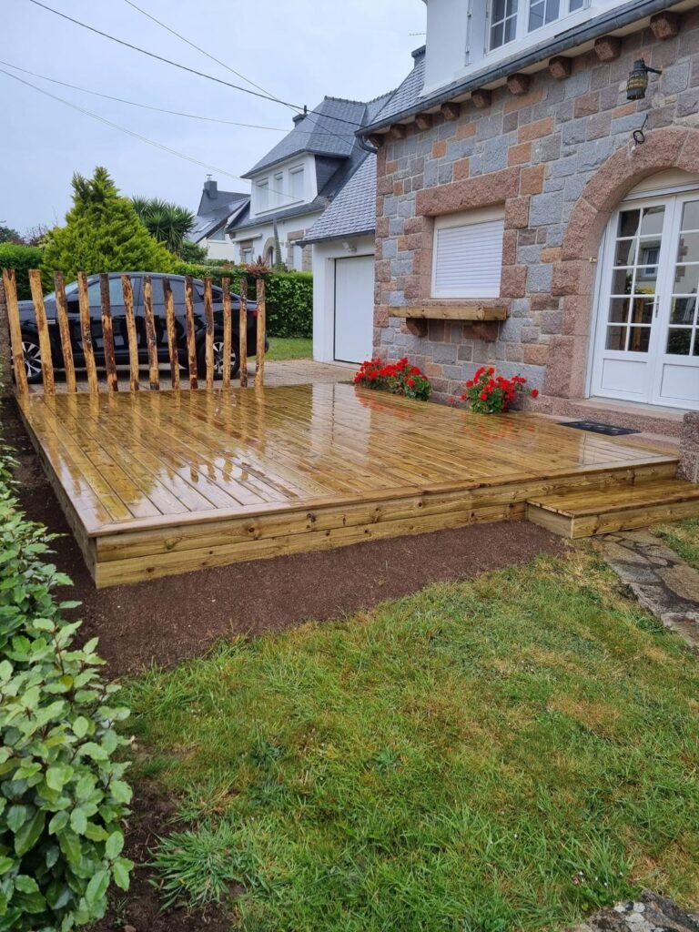 Adaptation au relief du jardin avec cette terrasse sur pilotis. Structure renforcée et garde-corps pour sécuriser l’espace, offrant une vue […]